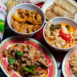 At PAPAYE, you can indulge in a variety of dishes ranging from vibrant Salades to mouthwatering Plats thaï and Plats fruits de mer. The Salade papaye, featuring shredded green papaya, carrots, tomatoes, peanuts, and chili mixed with tangy tamarind sauce, is a must-try. For seafood lovers, the Crevettes au basilic thaï and Calamars au basilic thaï are absolute winners.